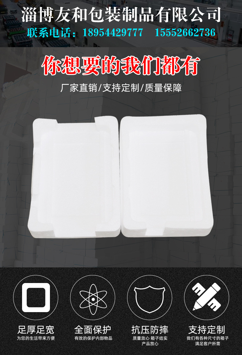 介紹參數圖冊 ????淄博友和包裝制品有限公司是專業的山東泡沫包裝箱加工廠家,本廠主要產品有:泡沫包裝箱,泡沫保鮮箱,水果蔬菜泡沫包裝箱,水果蔬菜泡沫保鮮箱,瓷磚泡沫包裝箱等,產品暢銷全國,深受用戶好評。泡沫包裝定做可以聯系我們網站 http://www.w7712.cn/ 上電話,我們會第一時間跟您聯系。 上一篇電磁包裝泡沫箱 下一篇蓄電池泡沫包裝箱