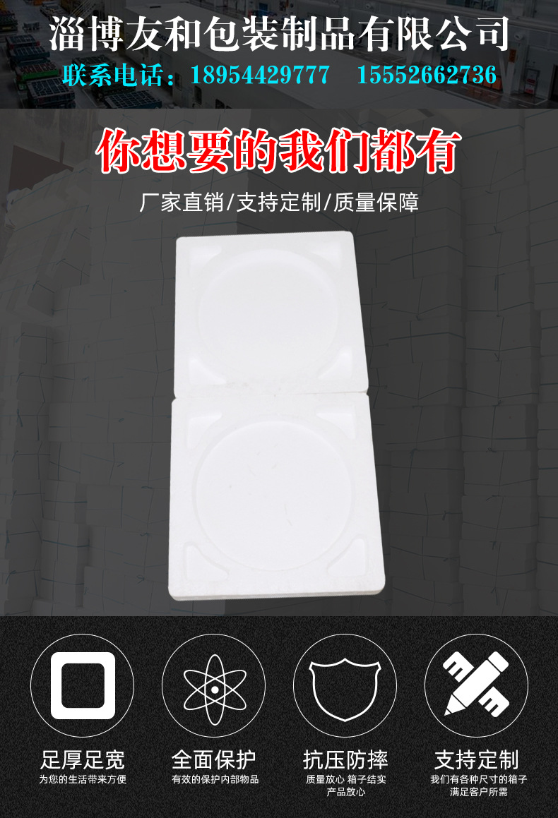 ????淄博友和包裝制品有限公司是專業的山東泡沫包裝箱加工廠家,本廠主要產品有:泡沫包裝箱,泡沫保鮮箱,水果蔬菜泡沫包裝箱,水果蔬菜泡沫保鮮箱,瓷磚泡沫包裝箱等,產品暢銷全國,深受用戶好評。泡沫包裝定做可以聯系我們網站 http://www.w7712.cn/ 上電話,我們會第一時間跟您聯系。